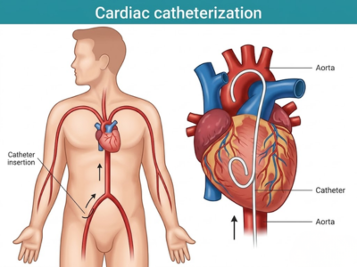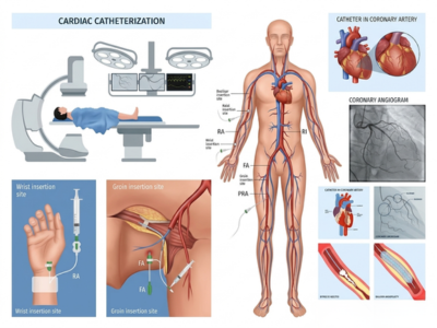 A diagnostic and therapeutic procedure that evaluates heart function and detects blockages using a thin tube inserted through blood vessels.