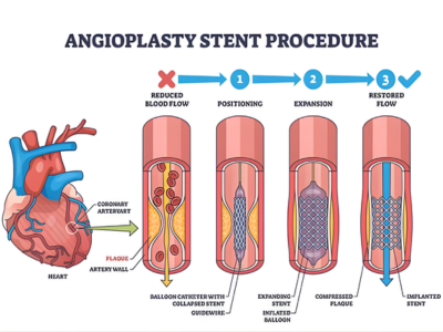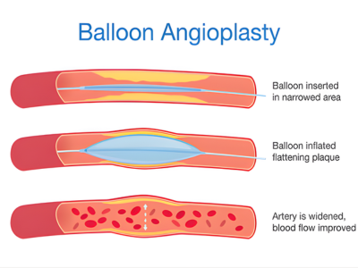 A catheter with a small balloon is inserted to open blocked arteries, restoring blood flow without the need for open-heart surgery.